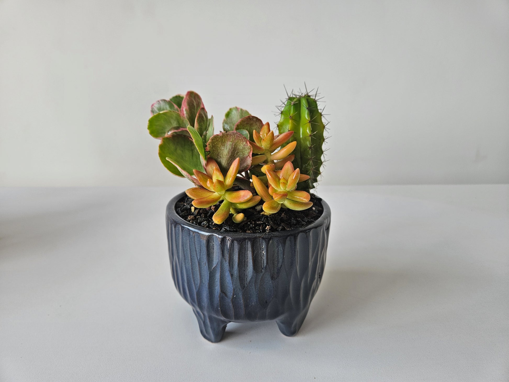 A mix of high light succulents arranged in plastic planters in different sizes, but can be planted into a pot of choice from our collection: