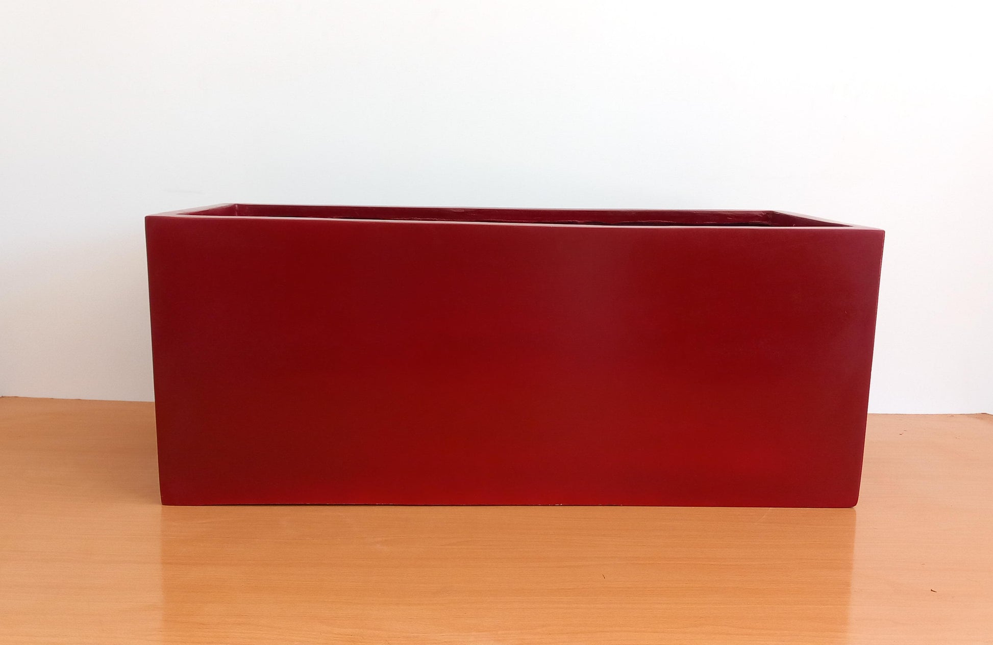 Fiberglass planter with a durable sealed finish for long-lasting use.
